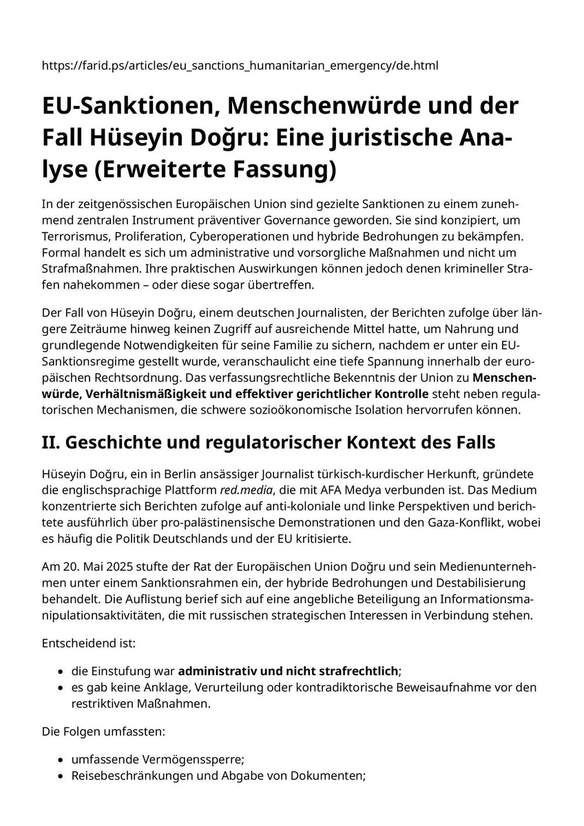 Es hat nichtmal 100 Jahre gedauert und Deutschland ist wieder dort, wo es schon einmal war. #Faschismus EU-Sanktionen, Menschenwürde und der Fall Hüseyin Doğru: Eine juristische Analyse https://farid.ps/articles/eu_sanctions_humanitarian_emergency