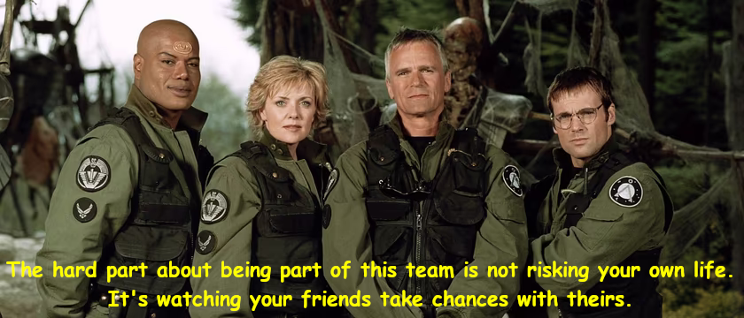 The hard part about being part of this team is not risking your own life, it's watching your friends take risks with theirs -- Samantha Carter in Stargate SG-1